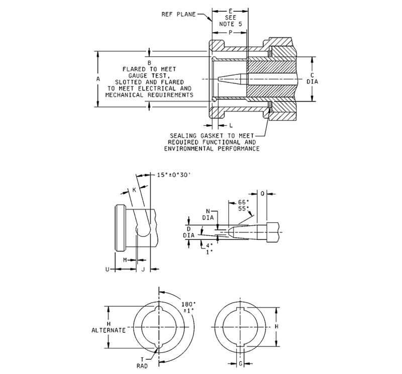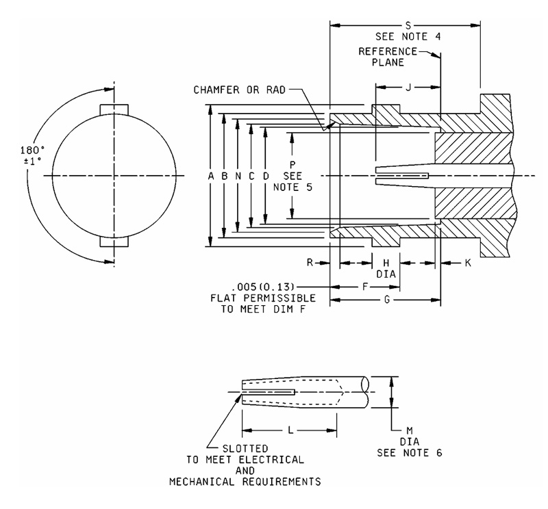 5. Dimenzija "P" odnosi se na onaj dio (ako je primjenjiv) dielektrika koji se proteže izvan referentnih ravnina dimenzijom K.